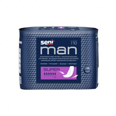 Seni Man Super sunt absorbante anatomice special concepute pentru bărbați care se confruntă cu incontinență urinară moderată, oferind protecție eficientă, confort sporit și discreție maximă pe parcursul întregii zile.